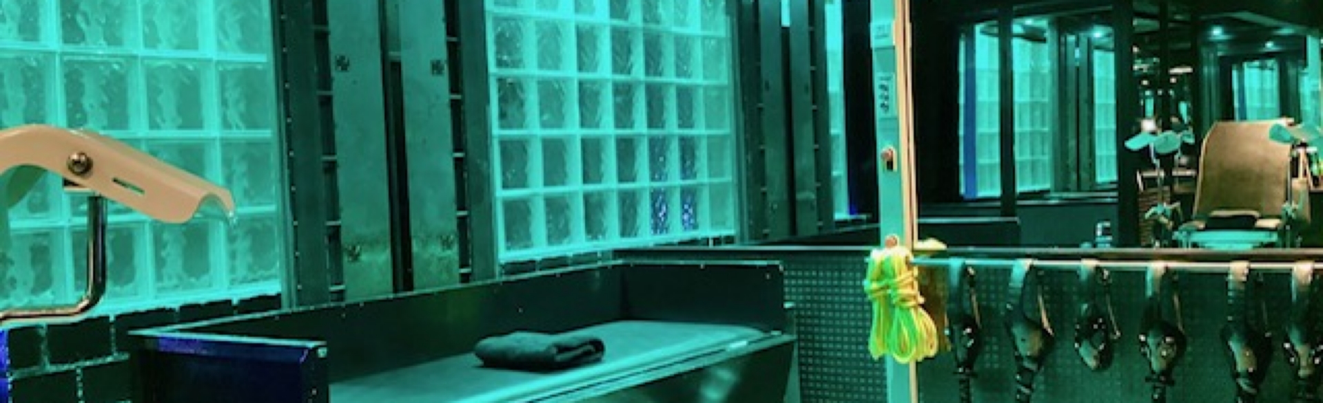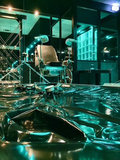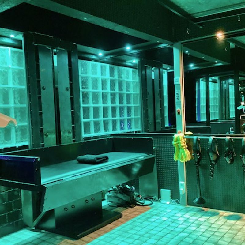 Wände aus tiefschwarzen Backsteinen und stark duftendem Noppengummi umschliessen Dich mit sanftem Druck.