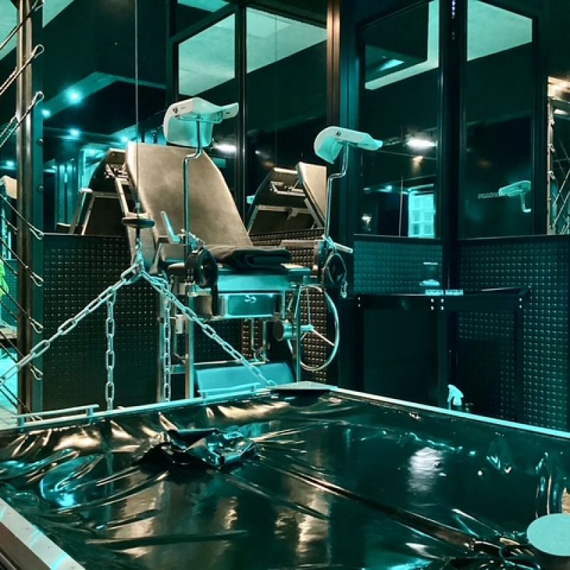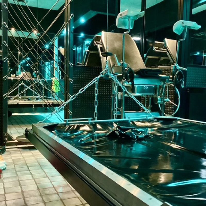 ▪︎ "Sarg"-Liege (Lift in die Dunkelheit) und Fesselstuhl